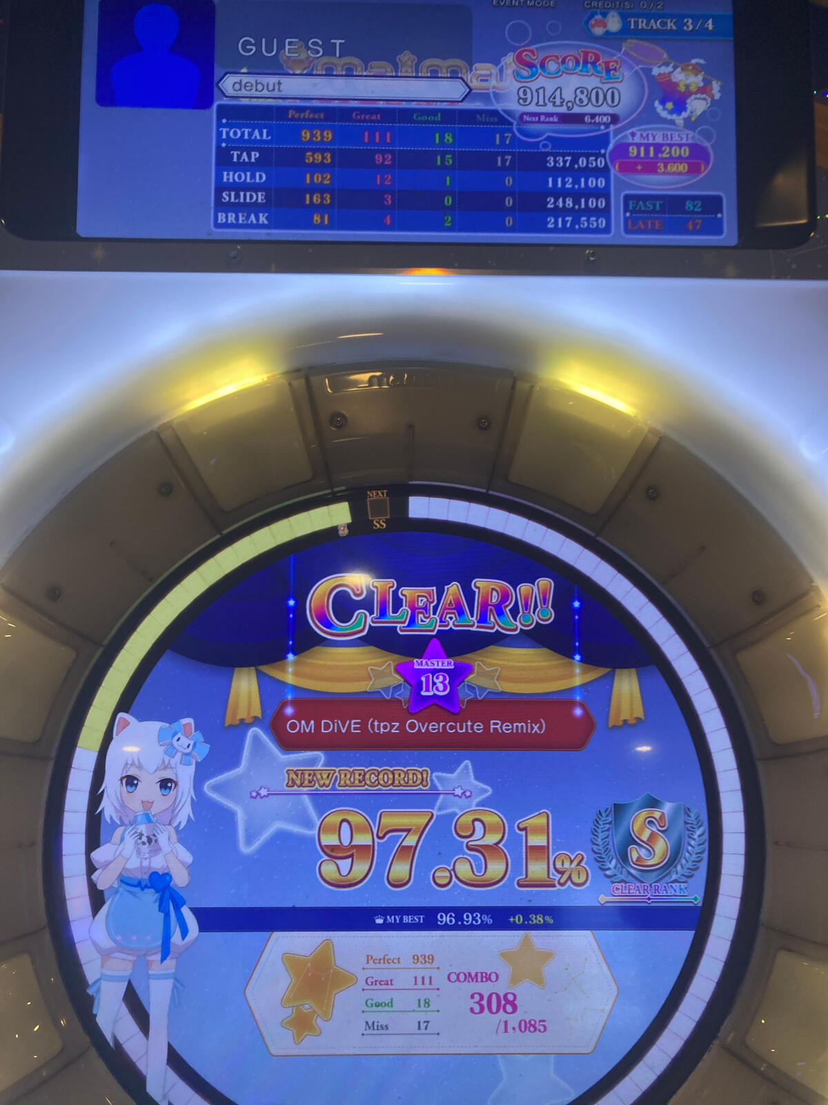 right around the end of december 2023, i was grinding Ss out of maimai, and i started feeling bored. i then asked myself "what if i started playing pump it up instead?" as the machine was right next to me. after i got an S on my first level 13 on maimai finale, i completely jumped ship.
